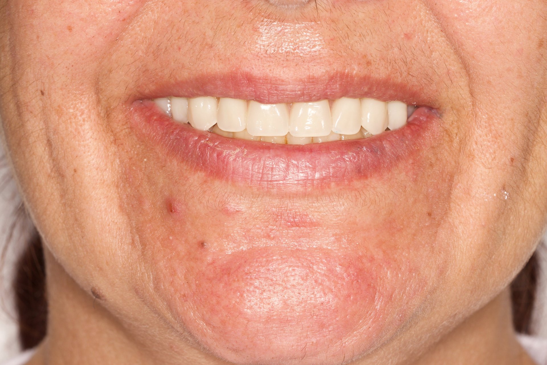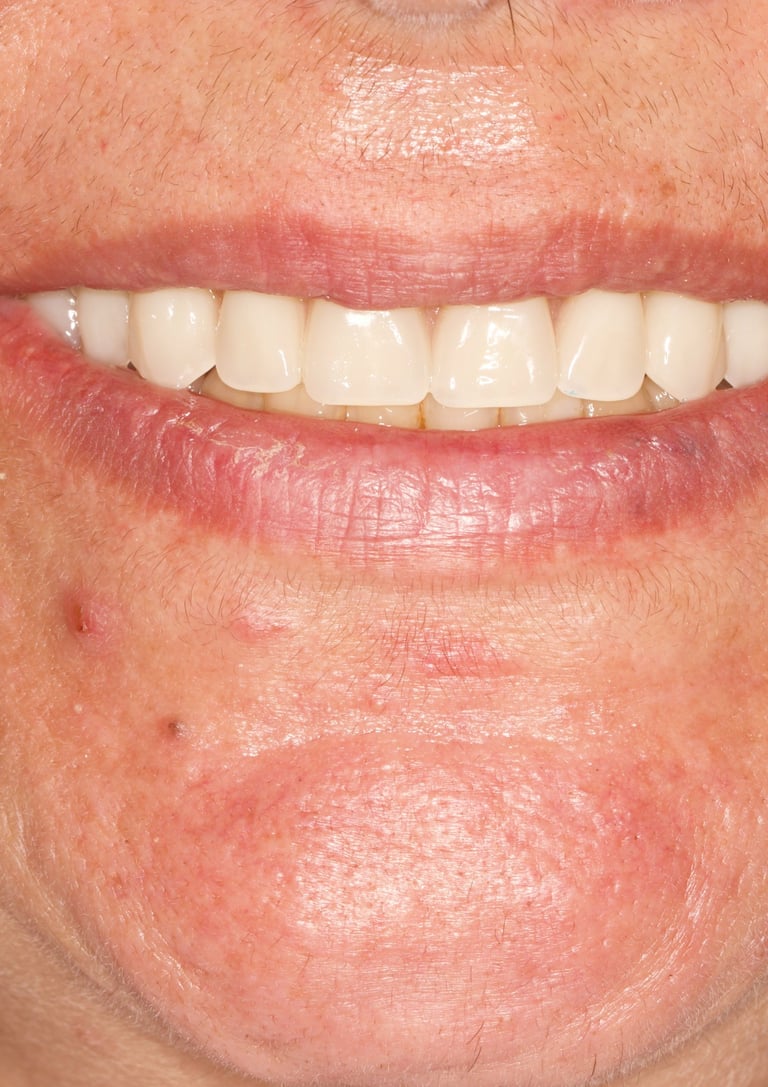 Após o período de cicatrização, substituímos a prótese provisória pela definitiva, desenhada para máxima durabilidade e estética.